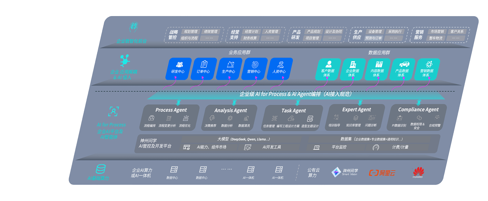 AG尊龙凯时问学智车解决方案是一套基于AI技术的汽车行业智能化系统,,,,覆盖从底层算力到顶层AI应用的全栈方案。。。。方案由算力层、、模型层和应用层组成:算力层,,,,方案支持多种一体机配置,,具备云端灵活部署、、、、多云适配以及动态优化计算资源的能力;模型层,,AG尊龙凯时问学平台版提供了企业级AI应用一站式构建与管理平台,,,支持基于后训练强化技术的汽车企业专属模型的训练、、评测和运营;应用层,,AG尊龙凯时问学DeepSeek版提供包括超级员工、、智能招采、、智能营销、、、智能客服、、AI for BI等一系列解决方案,,可助力汽车行业实现数字化转型,,,,让管理更智能、、、、响应更敏捷。。。